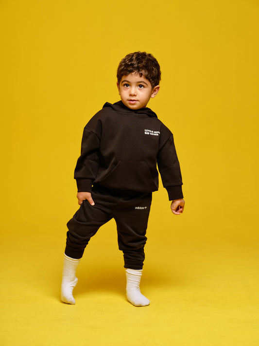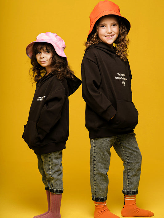Boys Black Hoodie "little human, big waves'