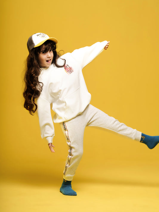 Girls White Hoodie "little human, big waves'