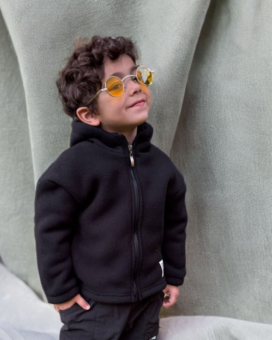 Black fleece hoodie jacket full zipper