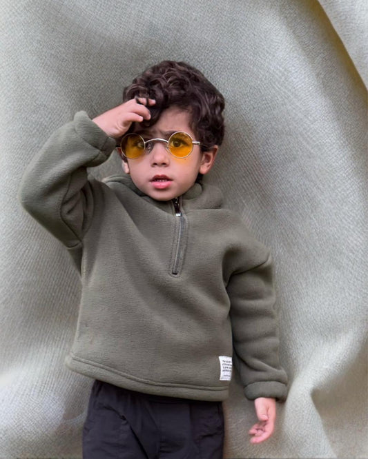 Sold outOlive fleece hoodie 1/4 zipper